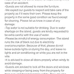 Há comodidades, como prensa para calças, ferro de passar roupas e controle de temperatura e TV de tela plana com canais via satélite e TV com vários canais. Juntamente com sofá, o interior apresenta janelas a prova de som. A pousada dispõe de casa de banho com bidé, casa de banho separada e chuveiro. Secador de cabelo, lençóis de banho e toalhas também garantem uma experiência confortável.